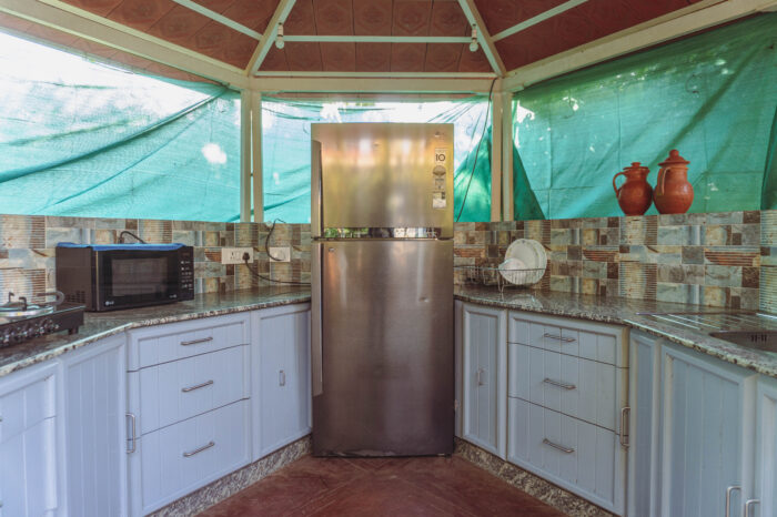 A classy spot to make your dining exceptional. The gazebo is unique because of its natural hexagonal shape, which is mirrored on the dining table. The handcrafted hexagonal table is detachable from its original position, allowing you purposefully use smaller tables. The climber plants conquering the pillars makes it so aesthetic that your meal will run longer than expected. Greenish plants, a mild coffee brown coated furniture, and the white light is what makes the gazebo a classy spot to dine. Everyone craves outdoor meals when eating at home.